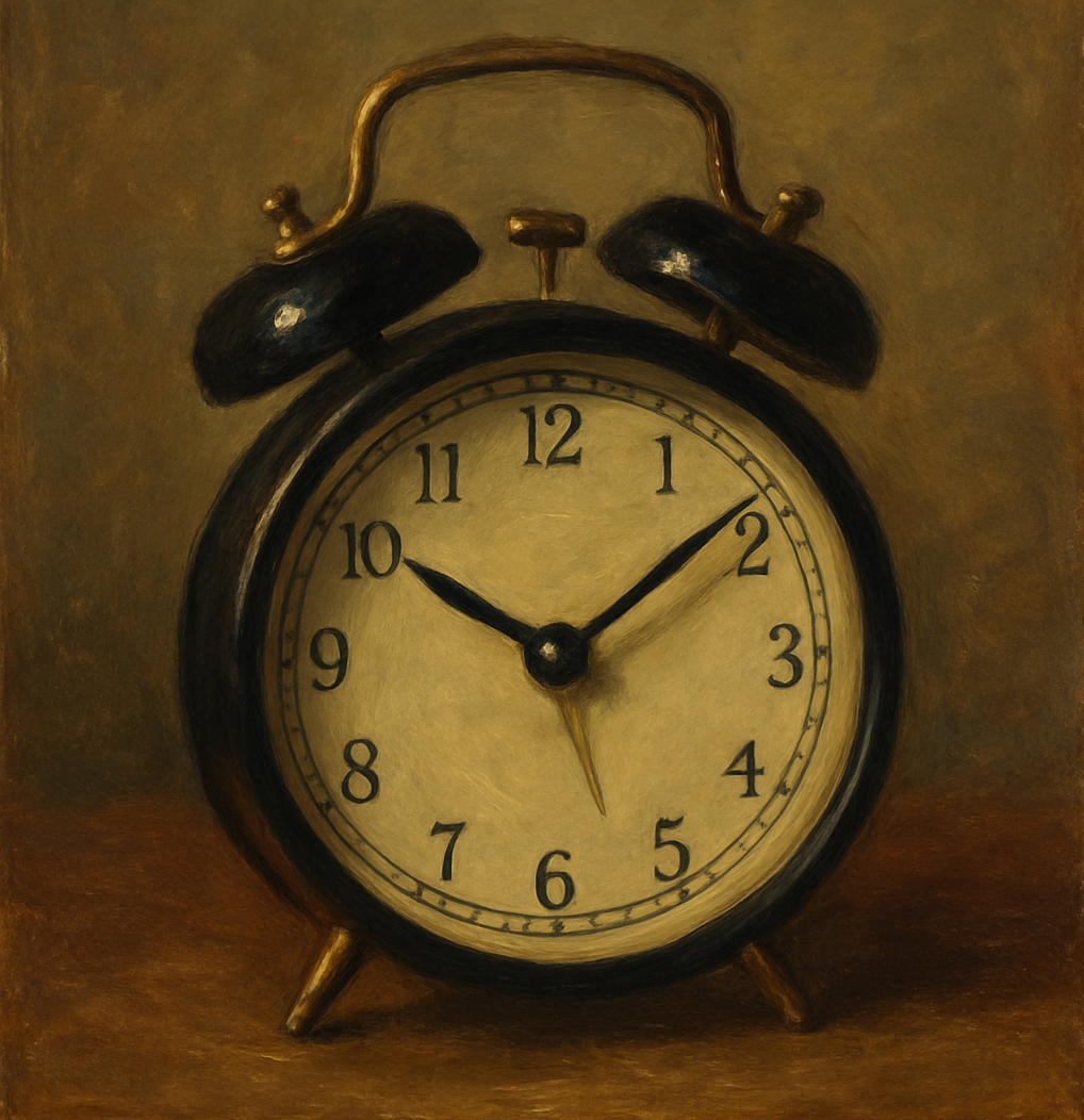 No terceiro dia, já desconfiado, dormi de lado e com um olho aberto. O despertador nem tocou. Quando olhei para o visor, dizia: